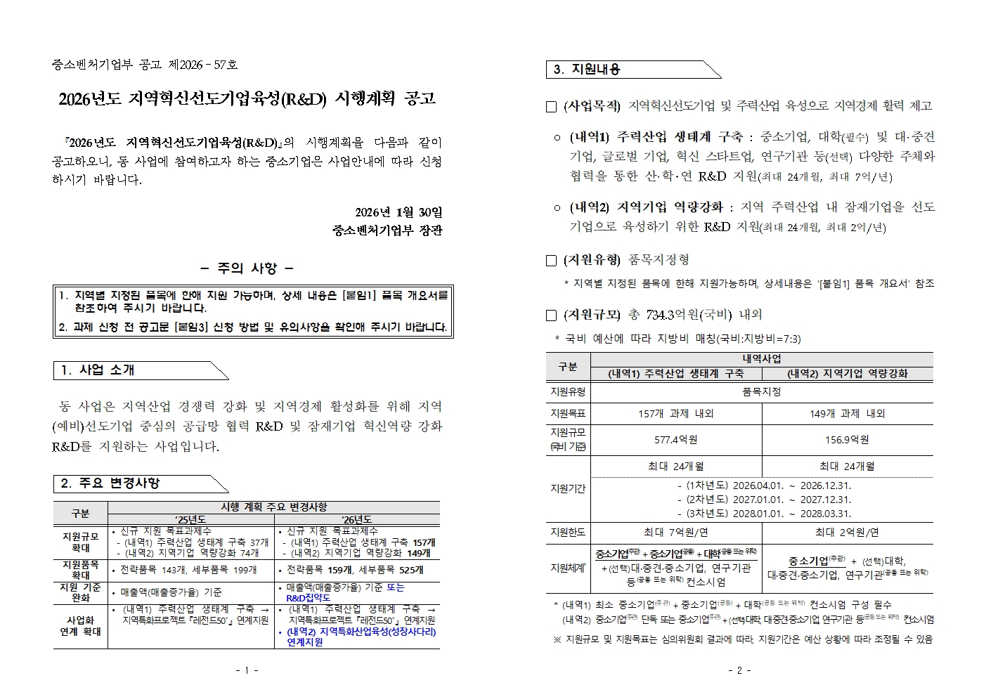 2026년 지역혁신선도기업육성(R&D) 시행계획 공고
